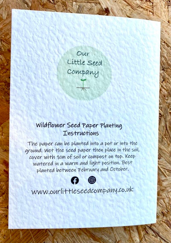 They contain a packet of wildflower seeds and plantable Wildflower seed paper images.