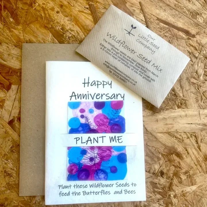 They contain a packet of wildflower seeds and plantable Wildflower seed paper images.
